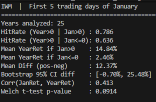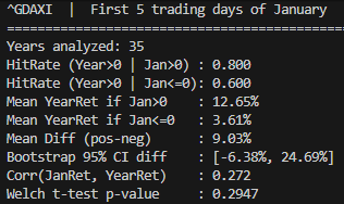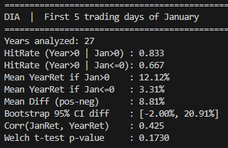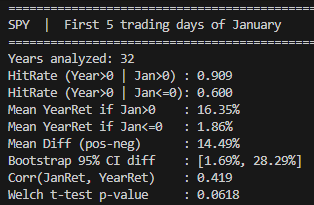 print(f"Corr(JanRet, YearRet) : {stats_out['Corr_Jan_Year']:.3f}")